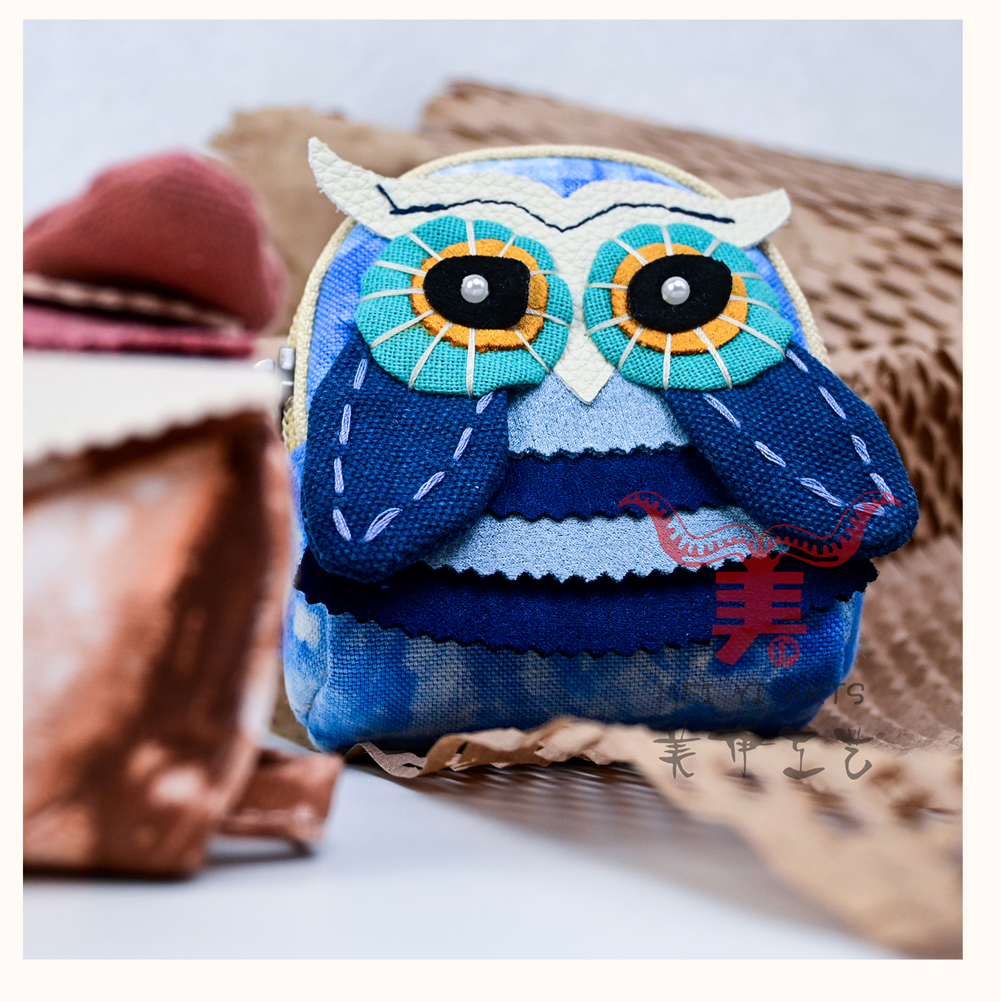 紮染貓頭鷹迷你耳塞和鑰匙包