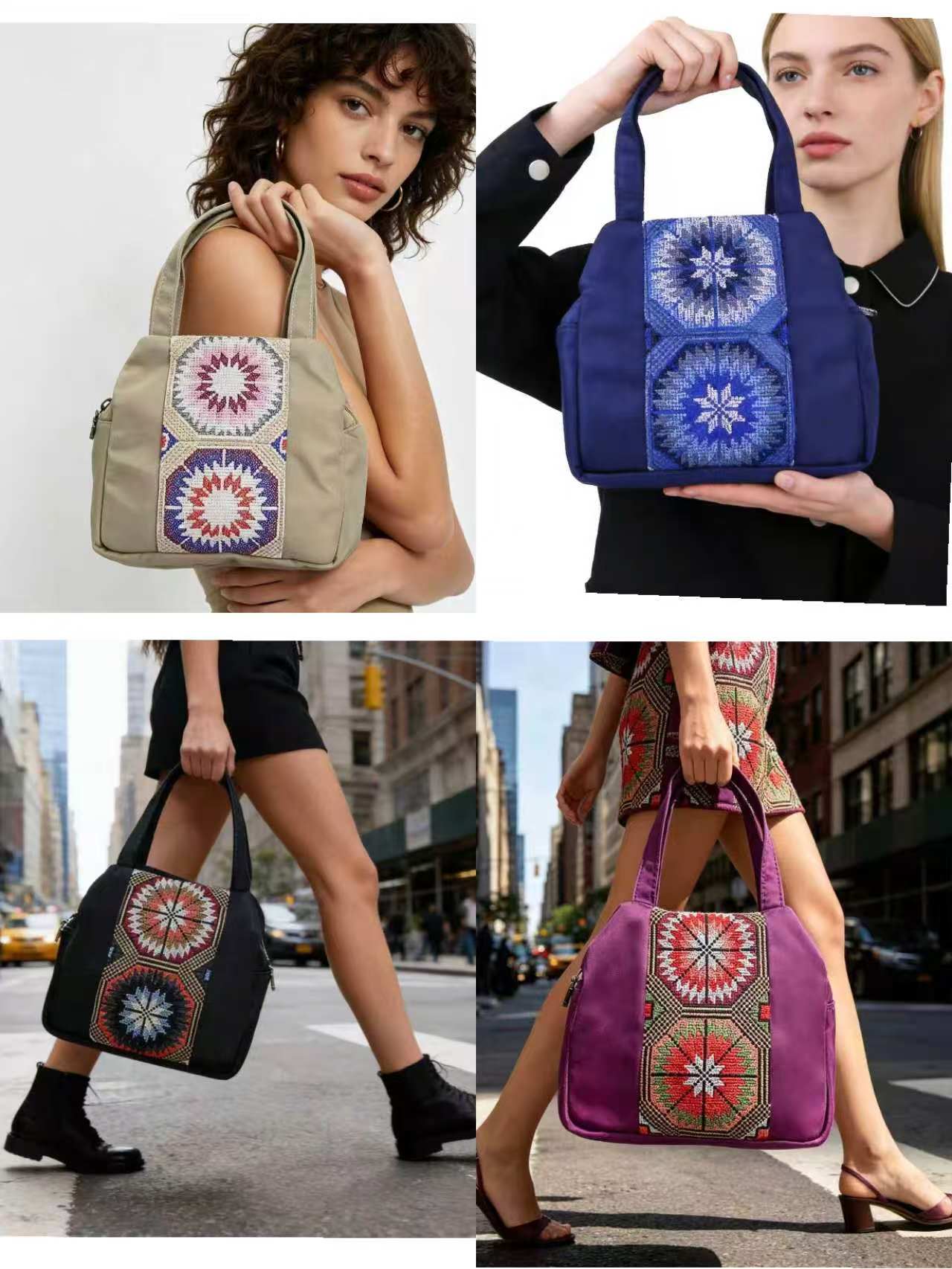優雅尼龍民族刺繡手提皮包