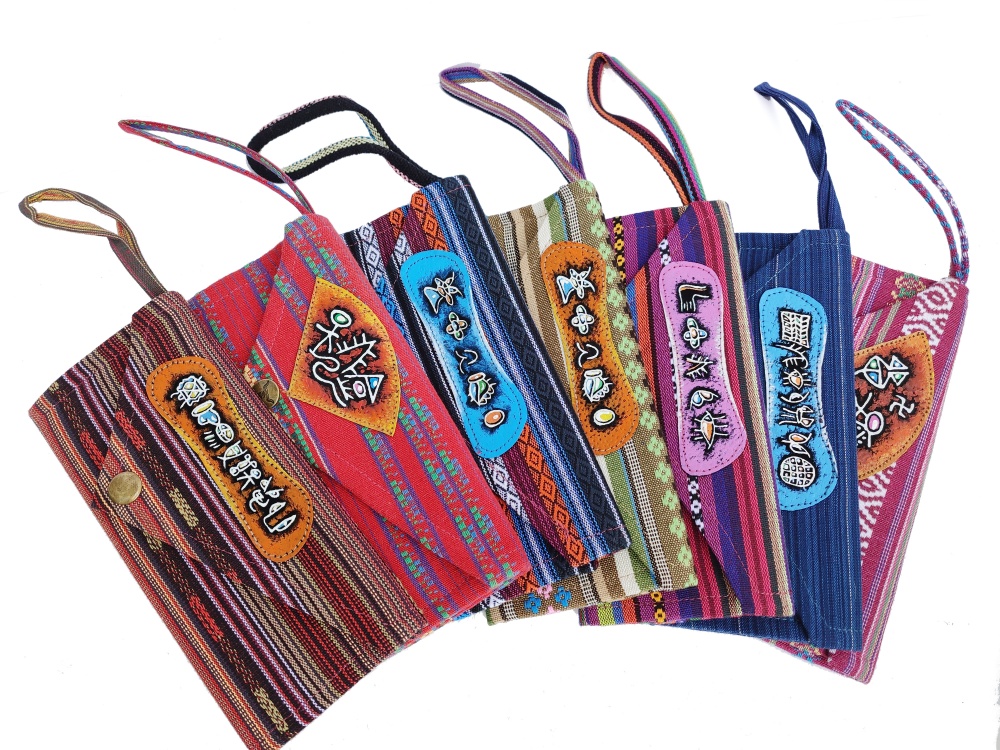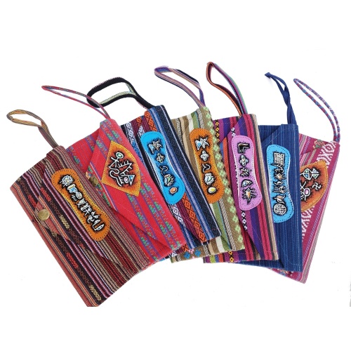 帶有原始符號印花的民族條紋布長錢包